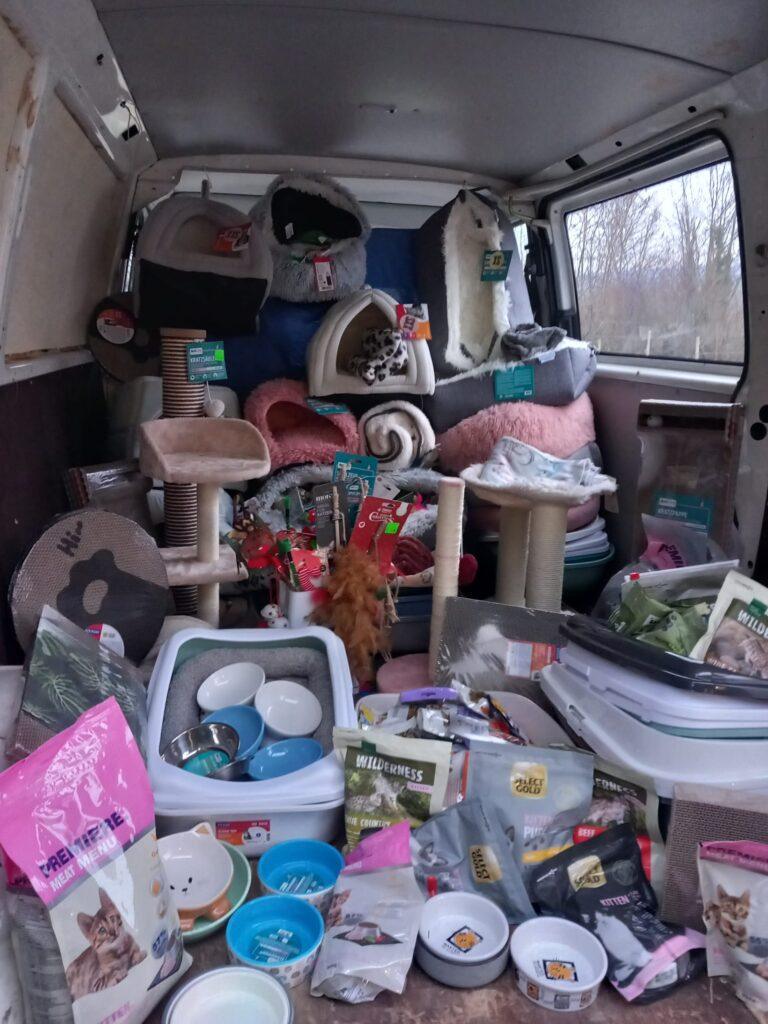 Wir sind unglaublich dankbar für die Vielfalt der Sachspenden, die uns erreicht haben. Von hochwertigem Nass- und Trockenfutter sowie palettenweise Katzenstreu für die tägliche Grundversorgung bis hin zu liebevoll ausgewähltem Katzenspielzeug, das den Alltag unserer Fellnasen verschönert – jede einzelne Gabe hilft direkt vor Ort. Besonders gefreut haben wir uns auch über neue Katzenhöhlen, die unseren scheuen Bewohnern wichtige Rückzugsorte bieten, sowie über stabile Katzentransportboxen, die für unsere regelmäßigen Fahrten zum Tierarzt unerlässlich sind.