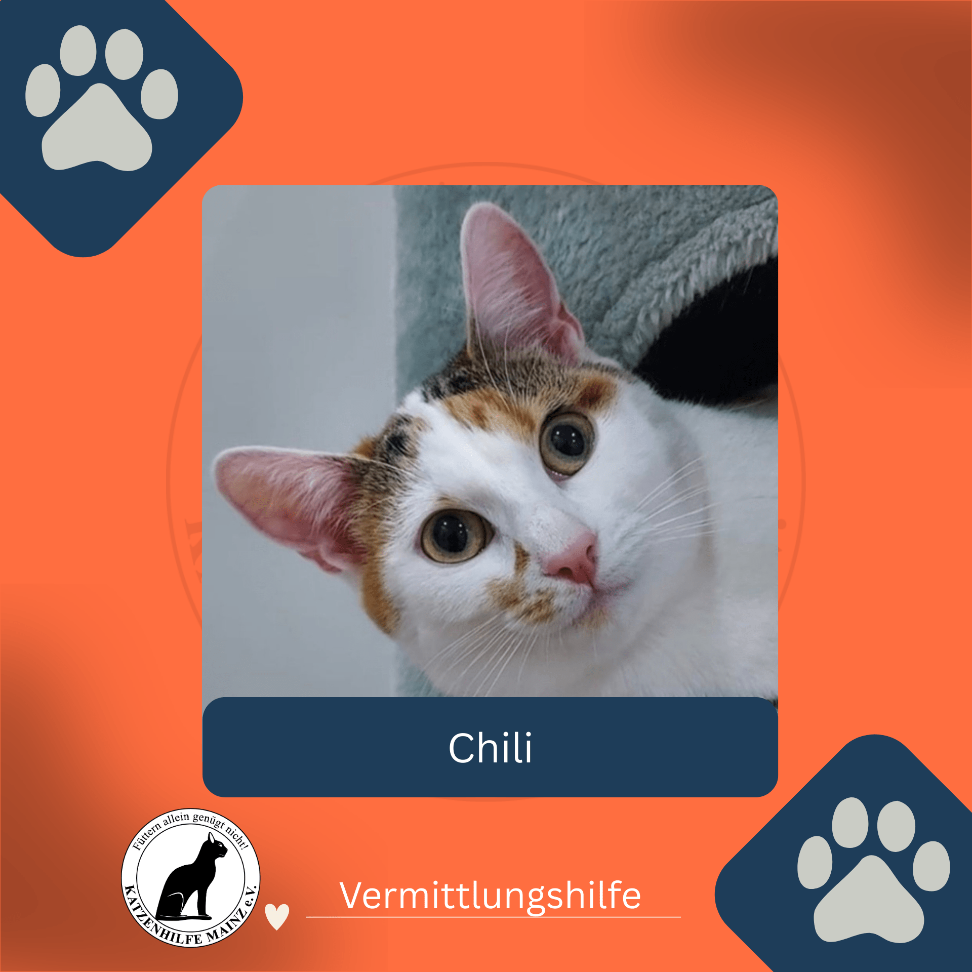 Hallo ich bin Dagi, eine Streunerin aus einem Schrebergarten in Jena. Auf Umwegen bin ich bei der Katzenhilfe Mainz in