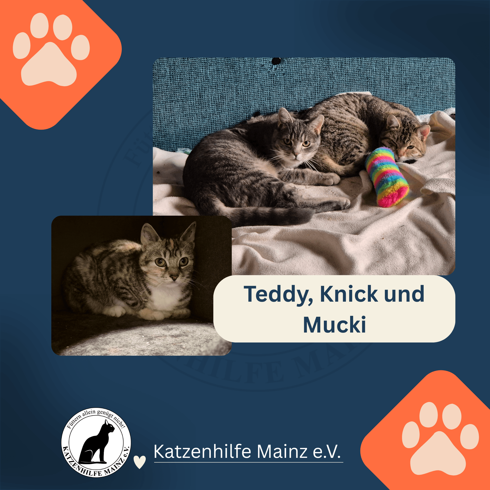 Bei uns warten drei ganz besondere Samtpfoten auf Menschen, die ihnen Zeit, Verständnis und einen sicheren Platz zum Ankommen schenken: